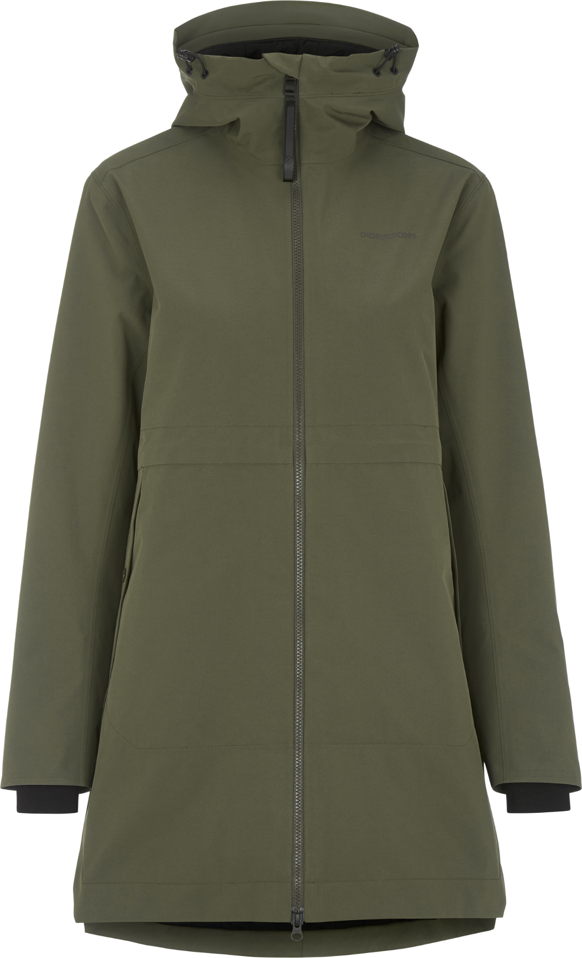 - Stilfull Design: Elena Parkan är designad med en bred täcklist och en diskret logotyp på axeln, vilket ger ett stilrent utseende. Fishtail-snittet bak ger en avslappnad, modern kant till din vintergarderob.