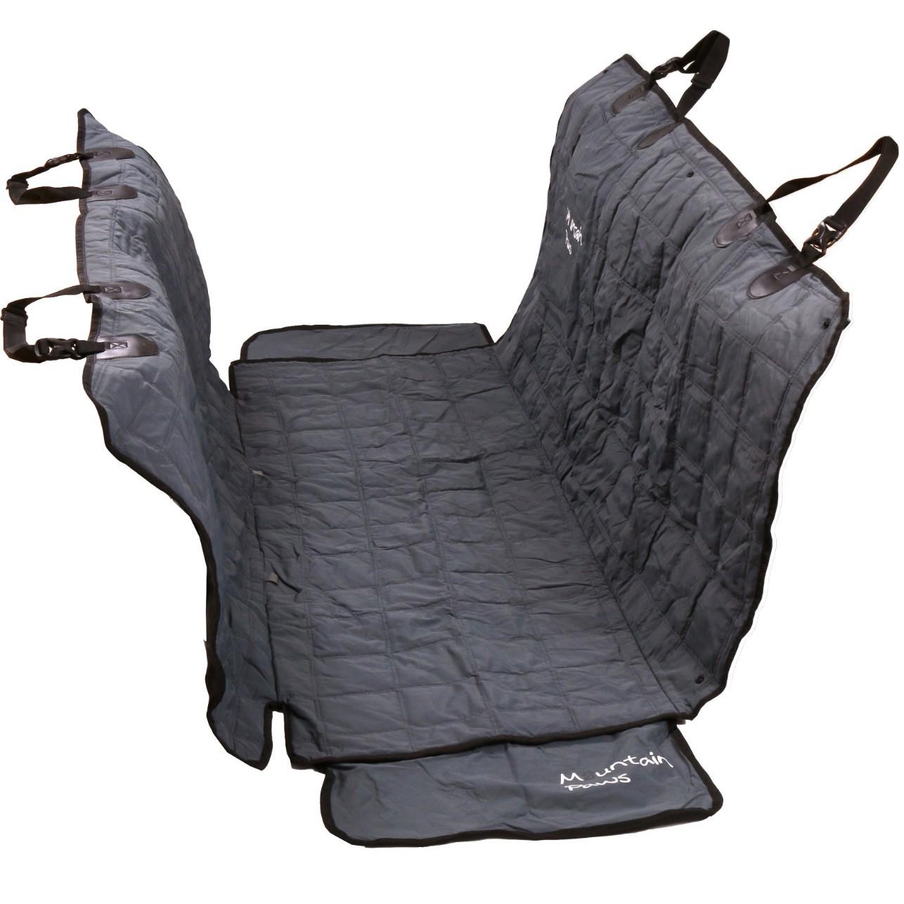 Mountain Paws Extra Tough Dog Car Seat Cover kan enkelt användas både som en hängmatta eller som ett traditionellt sätesöverdrag på baksätet. Oavsett ditt val kommer de justerbara huvudremsspärrarna säkerställa att överdraget sitter exakt och säkert. Med dess halkfria bottenhållsöverdrag hålls det stabilt på plats, även på långa resor.